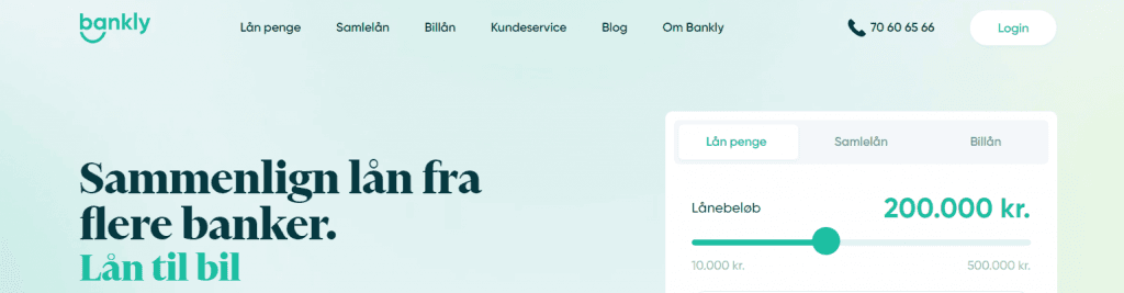 Bankly har gjort det enkelt at sammenligne tilbud fra flere banker med en uforpligtende ansøgning. Du sparer besværet med at tjekke prisen hos hver enkelt bank som Bankly samarbejder med, og det tager kun 2 minutter at udfylde ansøgningen. Låneberegneren er praktisk, når man ønsker at låne penge, og her kan man få et indtryk af hvordan et lån kan se ud. Der er dog kun tale om et eksempel, og de endelige priser og vilkår vil fremgå af lånetilbuddene.