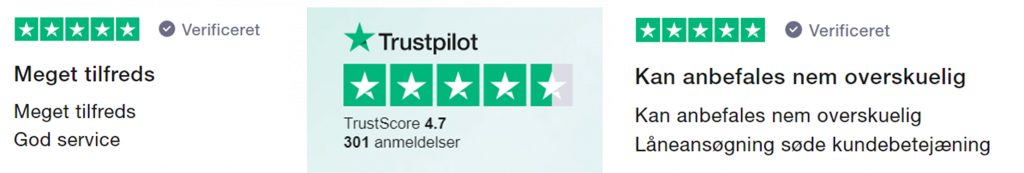 Du kan låne 20.000-350.000 kr. i 1-15 år, og få en ÅOP på 4,11-21,77%. Der er tale om lån uden sikkerhed, og tjenesten har en score på 4.8/5 baseret på mere end 2.500 anmeldelser.