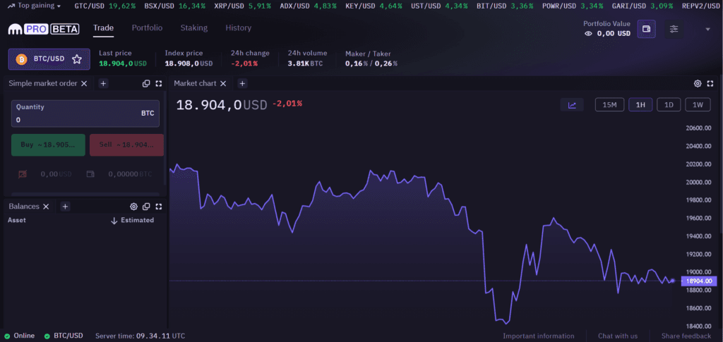 Denne kryptobørs ønsker være en platform som henvender sig til alle, og derfor kan investorer selv bestemme om de ønsker et enkelt udtryk eller har brug for mere avanceret handelsværktøjer gennem Kraken Pro.