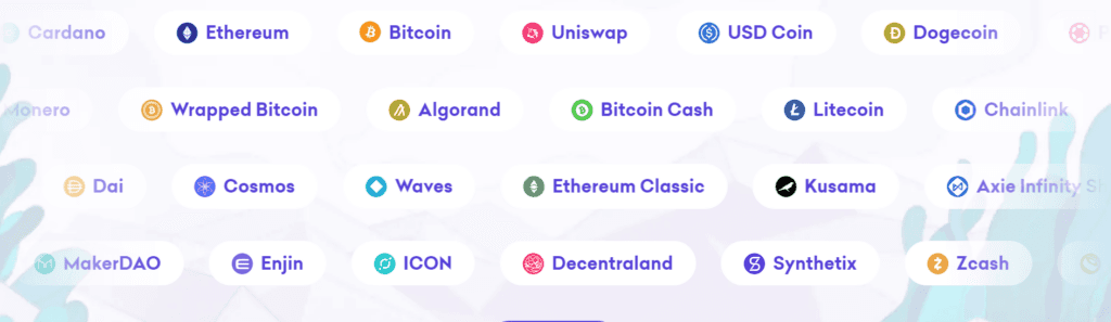 Kraken har et ganske udmærket udvalg, når det kommer til kryptovalutaer. De har i øjeblikket +185 registreret kryptovalutaer. Her er et udpluk af de mønter du kan handle: