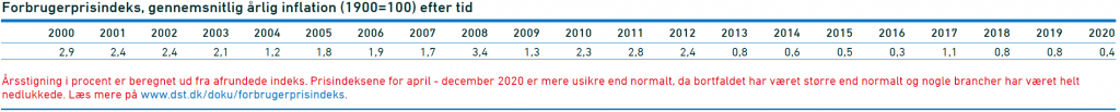 Det betyder i praksis, at du ville kunne få det samme for 10.000 kr. i slutningen af år 2020, som du kunne få for ca. 6.600 kr. i starten af år 2000.