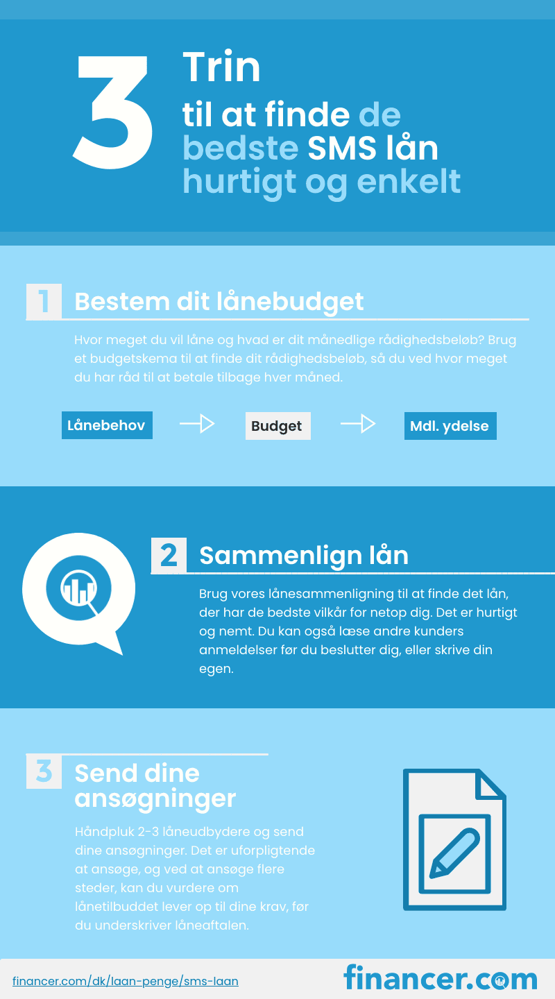 Øverst på siden har vi samlet de danske udbydere af SMS lån, så du nemt kan sammenligne priser.