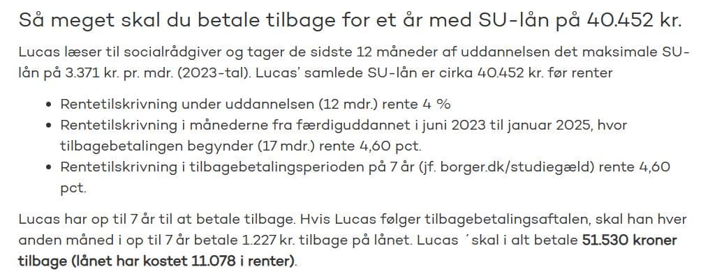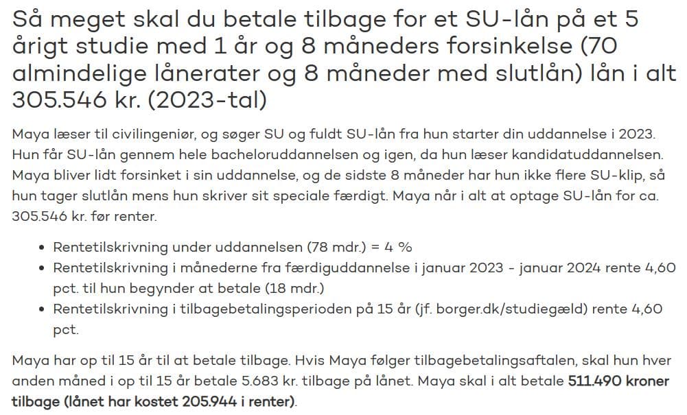 Disse eksempler giver en nogenlunde indikator for, hvad et SU-lån koster samlet set.