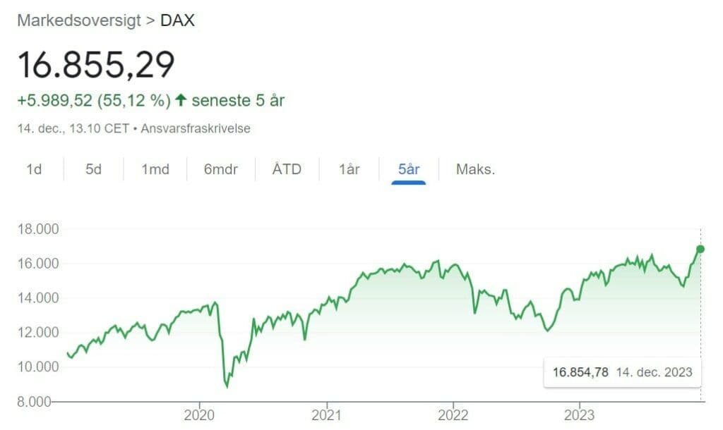DAX står for Deutscher Aktienindex, og er Tysklands svar på det amerikanske Dow Jones indeks.