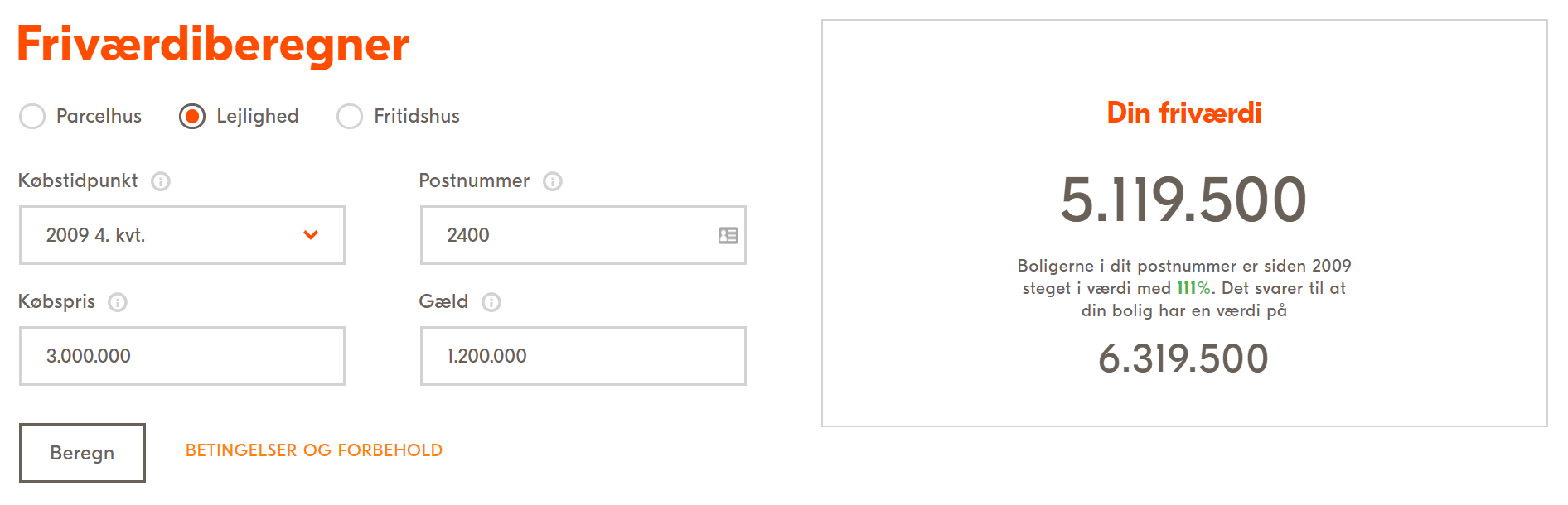 Vil du have svar her og nu, kan du prøve Totalkredits friværdiberegner, som er baseret på den gennemsnitlige prisudvikling i dit område.