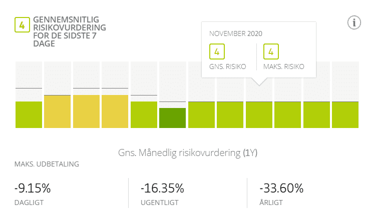 Det er selvfølgelig umuligt at sige, om en portefølje kommer til at svinge mere eller mindre end en bestemt procentsats, og risikovurderingen er baseret på historisk data.