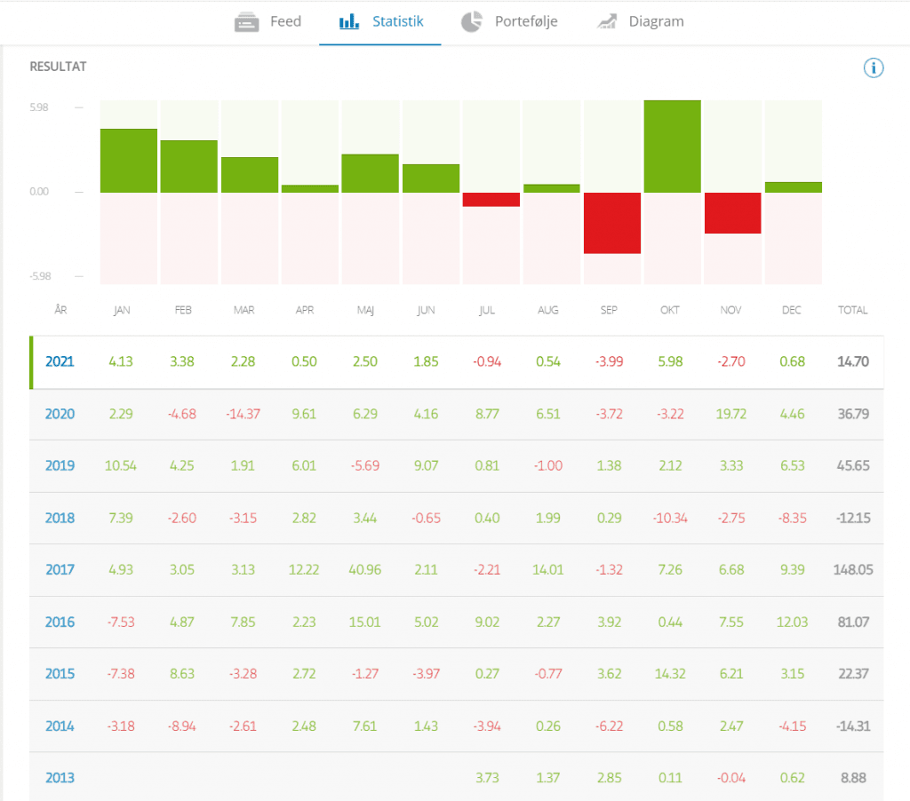 Antallet af kopierende fik et stort boost efter denne artikel fra Børsen tilbage i September 2020, med et gennemsnitligt årligt afkast på over 30% siden han begyndte i 2013 er nok den største grund til hans popularitet.
